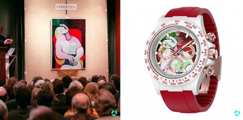 毕加索的画作除了被用于室内装饰,还被用于很多产品的设计主题中,比如:红酒、服饰、生活用品等等。在国外有一家腕表改造品牌——AET REMOULD,用毕加索著名或不为人知的作品作为改造劳力士表盘的最大亮点,这是一种大胆的艺术创造与尝试。